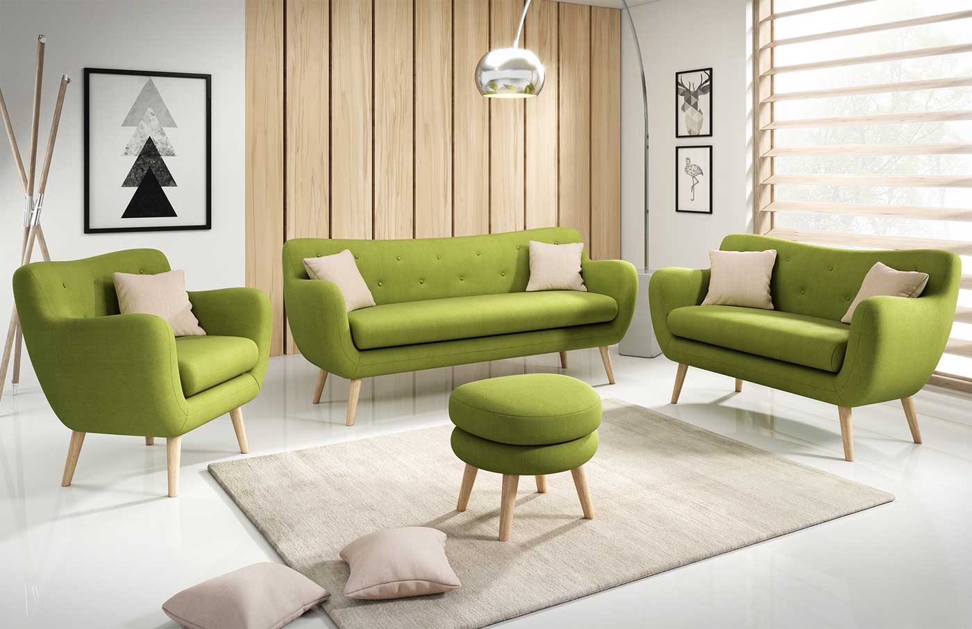 Runde, knuffige Designsprache, formschöne, hochwertige Verarbeitung – Für den optimalen Sitzkomfort sorgen ein stabiles Holzuntergestell und ein bequemer Schaumkern auf Nosagfedern. Dazu passend der 3-Sitzer, 2-Sitzer und die Sessel, dieses Polstermöbel lädt zum Verweilen und Relaxen ein.